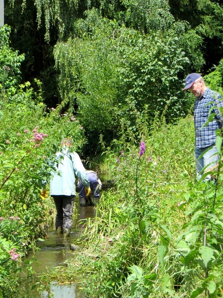 Nach drei Jahren - im letzten und im laufenden Jahr wurde das Springkraut in diesem Bereich schon einmal vollständig beseitigt - kann dieser Teil des Tiefenbachs völlig springkrautfrei sein. Die Wasserführung des Baches ist hier noch nicht sehr ausgeprägt.